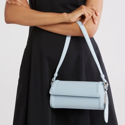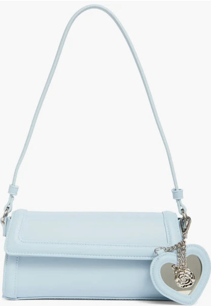 Un colgante de bolso en forma de corazón con efecto espejo le da un toque retro a este elegante bolso baguette de suave piel sintética.